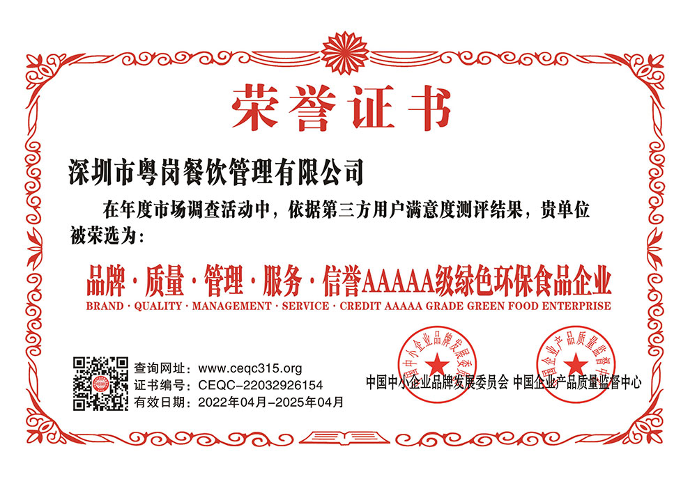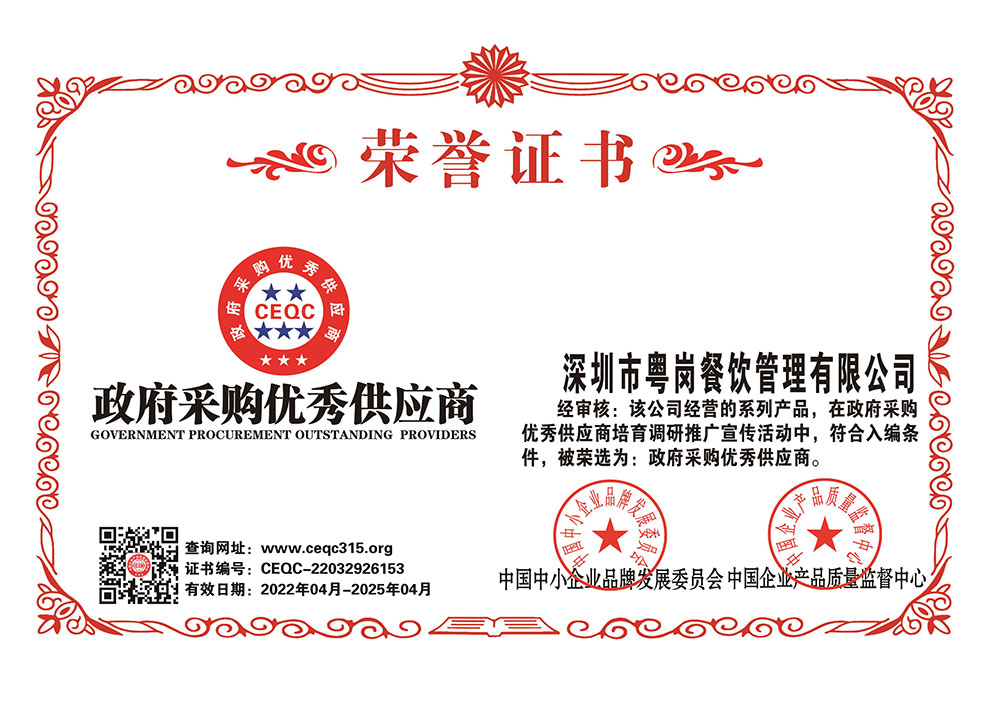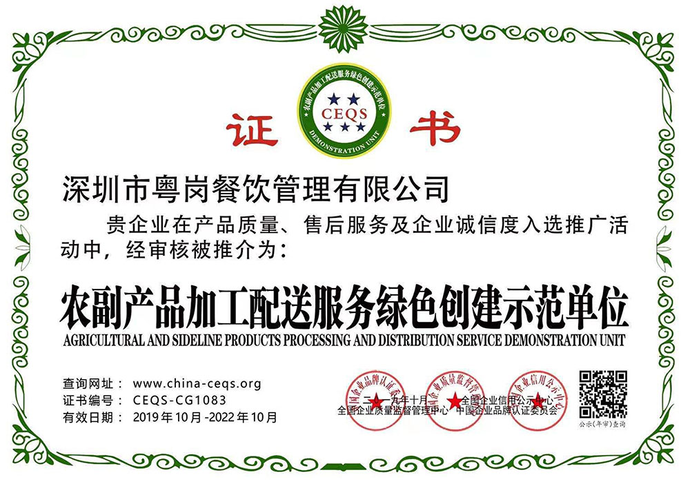 深圳市粵崗餐飲管理有限公司,是一家集蔬菜種植和農(nóng)副產(chǎn)品配送為一體的專業(yè)型餐飲公司,主要為學(xué)校、工廠企事業(yè)機關(guān)單位提供蔬菜和農(nóng)副產(chǎn)品配送服務(wù)。公司自成立以來始終以質(zhì)優(yōu)價廉、服務(wù)至上為原則,嚴格按照ISO:9001國際標準體系進行管理。同時建立了行業(yè)領(lǐng)先的配送中心、大型冷庫和保鮮庫、檢測中心以及專業(yè)化的配送團隊,能長期安全、穩(wěn)定、準時的配送貨物。我們所有蔬菜均經(jīng)過初步加工、無黃葉,無泥沙等雜質(zhì),利用率達97%以上...保障向用戶提供的各類食材的衛(wèi)生和質(zhì)量。公司為了適應(yīng)不同客戶的需求,配有專業(yè)人員和配送車輛,實行“一對一”的服務(wù)體制,一心一意的為客戶服務(wù),秉承粵崗誠實守信、服務(wù)第一、客戶至上的服務(wù)標準,真正讓客戶花最少的錢吃最好的菜。粵崗多年來何以欣欣向榮,因為我們知道只有勇于擔當責任,才能承擔更大的責任,就是因為 粵崗員工貫徹公司態(tài)度決定一切、細節(jié)決定成敗的真理,從質(zhì)量抓起,從服務(wù)做起,才創(chuàng)造了如今的規(guī)模化供應(yīng)、統(tǒng)一性配送、專業(yè)化服務(wù)的粵崗。